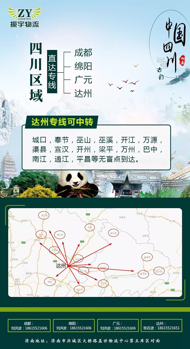 達(dá)州專線可中轉(zhuǎn)城口,奉節(jié),巫山,巫溪,開(kāi)江,萬(wàn)源,渠縣,宣漢,開(kāi)州,梁平,萬(wàn)州,巴中,南江,通江,平昌等無(wú)盲點(diǎn)到達(dá),解決大件異行設(shè)備的中轉(zhuǎn)困難!