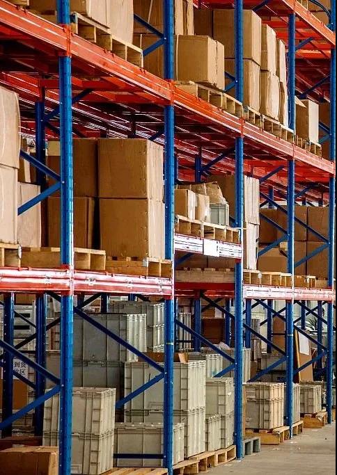 倉庫貨架立柱為藍色,主要起承重和固定作用,橫梁為橘黃色,主要起承載托盤的作用。藍色是非常沉穩(wěn)的顏色,具有緩解焦躁的作用,有效降低作業(yè)人員在重復的操作中可能形成的疲勞感;而橘黃色是非常醒目且活躍的顏色,有著讓人積極快樂、增強活力的功能,且藍色與橘黃色是對比色,在叉車工作時能很好地辨識托盤位置,準確碼放貨品,保障貨品的存取安全。