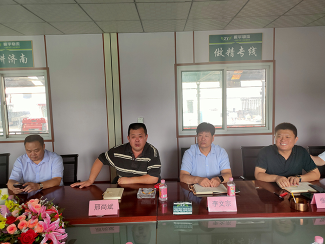 2020年8月10日,濟南市公安局物流寄遞保衛(wèi)支隊黨委書記、支隊長單金文、政委王鋒、紀(jì)委書記樊延海等一行到振宇物流慰問指導(dǎo)工作,濟南市物流發(fā)展促進會會長邢尚斌、副會長李文宗、秘書長杜兆偉等陪同參加。