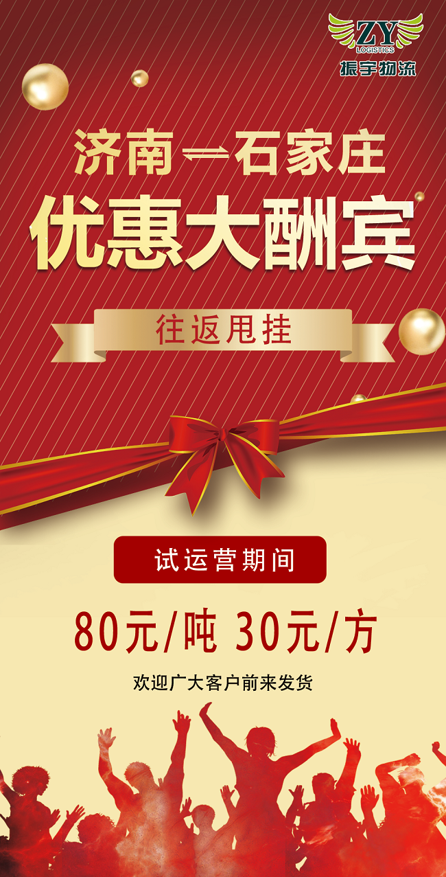 熱烈祝賀振宇物流9.13號(hào)開(kāi)通濟(jì)南到石家莊專線!往返甩掛,優(yōu)惠多多!