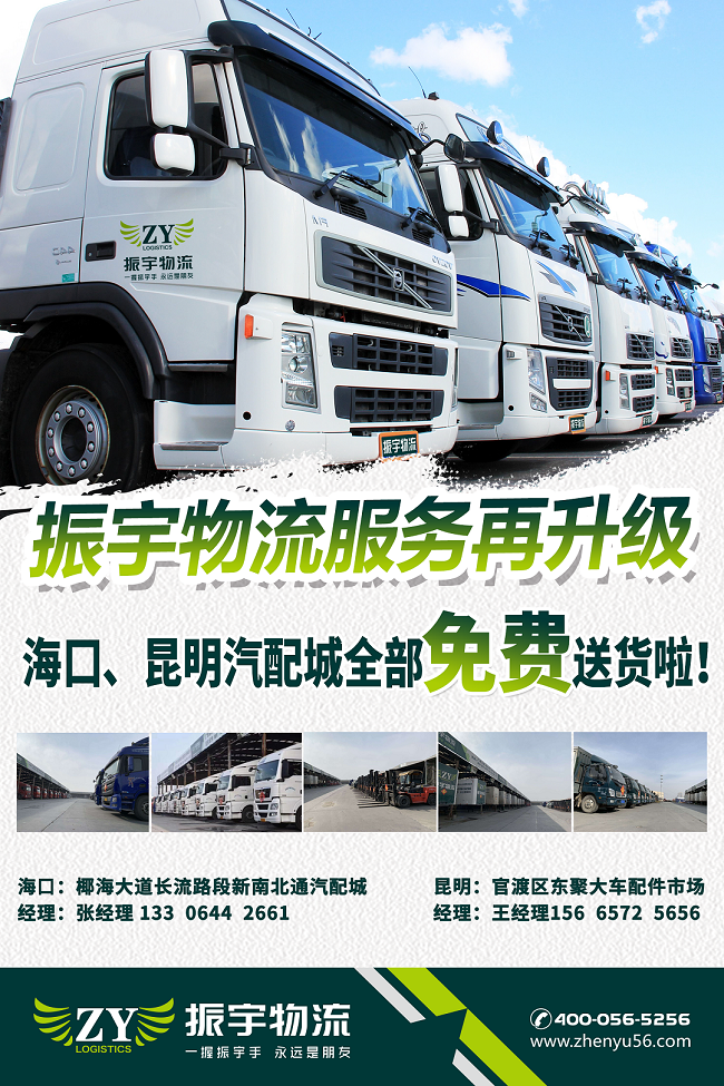 振宇物流服務再升級!海口、昆明汽配城全部免費送貨啦!