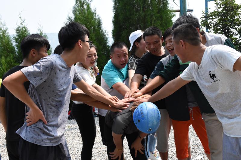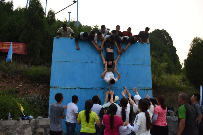 在訓(xùn)練過(guò)程中,全體員工被分為三支隊(duì)伍并展開(kāi)了激烈的競(jìng)爭(zhēng),8米的高空斷橋,真正的個(gè)人挑戰(zhàn),敢于挑戰(zhàn)便是對(duì)自己的一大突破,只有勇 于不斷的去突破自己,才能在工作、生活中有所成長(zhǎng),有所改變;所有學(xué)員站在1.5高的背摔臺(tái)上背對(duì)著大家,身體筆直的倒下,由下面的伙 伴將其接住。面對(duì)這個(gè)挑戰(zhàn),敢不敢將自己的后背交給隊(duì)友?敢不敢充分的相信隊(duì)友?如何去建立信任……通過(guò)訓(xùn)練活動(dòng)讓員工們體驗(yàn)到解 決問(wèn)題的方法,員工們之間面對(duì)同樣一個(gè)問(wèn)題所表現(xiàn)出來(lái)的態(tài)度,如何達(dá)到共識(shí),并進(jìn)行配合共同解決。最終大家齊心協(xié)力在規(guī)定時(shí)間內(nèi)完 成了超音速、背摔、斷橋、有軌電車、求生墻等眾多項(xiàng)目。
