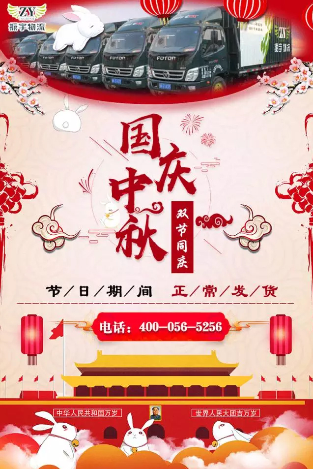 振宇物流各個(gè)網(wǎng)點(diǎn)正常營(yíng)業(yè),雙節(jié)期間班車(chē)彈性發(fā)車(chē),時(shí)效或順延一天,請(qǐng)您給下游客戶做好溝通解釋?zhuān)?nbsp;