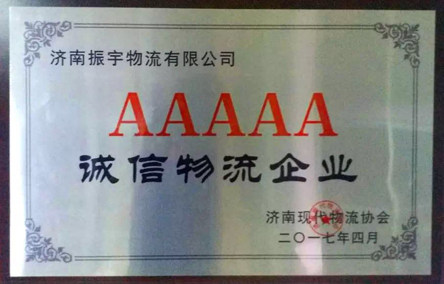 2017年5月10日,濟(jì)南現(xiàn)代物流協(xié)會(huì)2017年年會(huì)暨表彰大會(huì)在濟(jì)南祥云酒店隆重召開(kāi)。經(jīng)過(guò)嚴(yán)格評(píng)選,濟(jì)南振宇物流榮獲“5A級(jí)誠(chéng)信物流企業(yè)”、“濟(jì)南市優(yōu)秀物流企業(yè)”榮譽(yù)稱號(hào)。