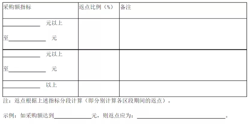 協(xié)議內(nèi)容里,除了采購(gòu)額達(dá)到多少,返點(diǎn)比例多少以外,還包含以下幾個(gè)關(guān)鍵要素: