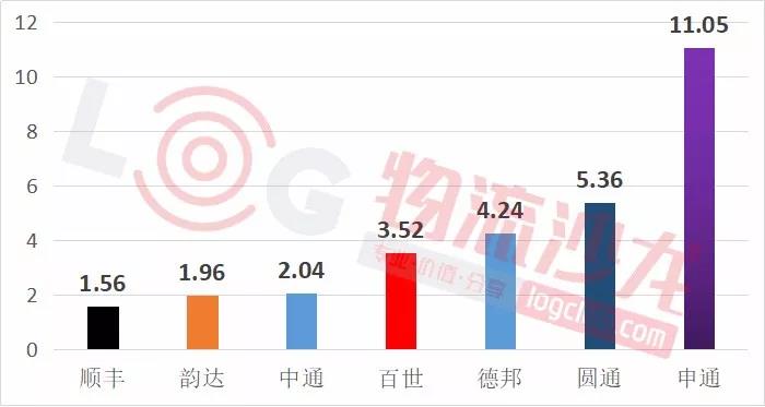 根據國家郵政局《關于郵政業(yè)消費者申訴情況的通告》數據統(tǒng)計,2017年全年,順豐依舊是2017年總體申訴率最低的企業(yè),月平均申訴率為 1.56件(每百萬件快遞有效申訴數量),遠低于全國平均的 5.79件。而申通的月平均申訴率為11.05件,表現一般??傮w排名為順豐、韻達、中通、百世、德邦、圓通、申通。