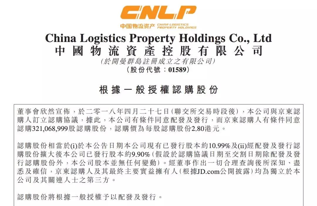 中國物流資產(chǎn)控股有限公司近日宣布,已與京東認購人訂立股份認購協(xié)議,京東認購人為JD.com, Inc.子公司。